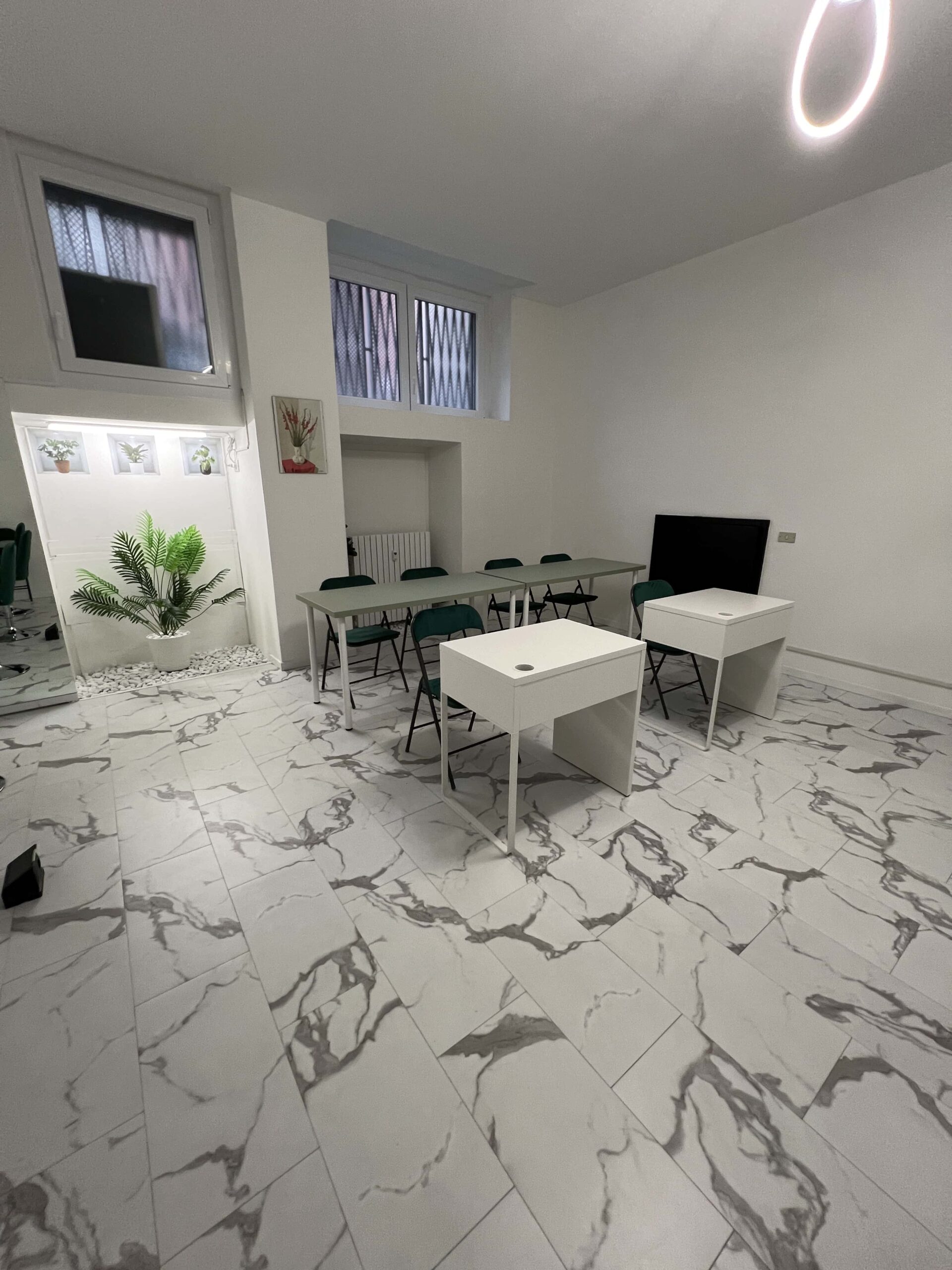 Un spazio con finiture di pregio e metrature importanti a disposizione oltre ad una serie di attrezzature già in home specifiche per i corsi di estetica.